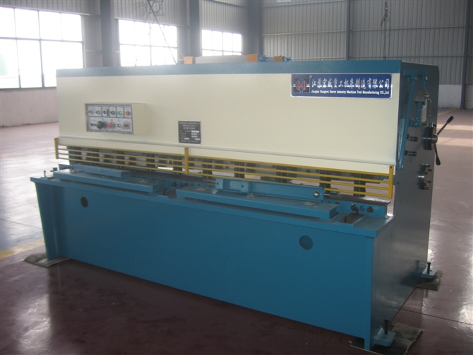 性能與特點: 1.采用鋼板焊接結(jié)構(gòu),液壓傳動,氮氣缸回程,操作方便,性能可靠,外形美觀。 2.刃口間隙調(diào)整有指示牌指示,調(diào)整輕便迅速。 3.設(shè)有燈光照明裝置,并能無級調(diào)節(jié)上刀架的行程量。 4.工作區(qū)采用柵欄式人身安全保護裝置。 5.后擋料尺寸及剪切次數(shù)有數(shù)字顯示裝置。