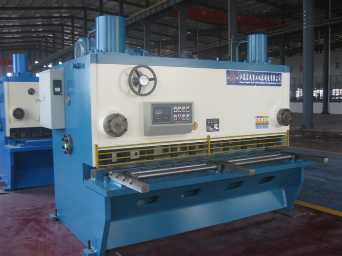 性能與特點: 全鋼焊接結構,綜合處理(振動時效、熱處理)消除內應力,有很好的剛性與穩(wěn)定性。 采用先進的液壓系統(tǒng),可靠性好。 采用精密滑動導軌,消除導軌間隙,剪切質量高。 電動后擋料,手動微調,數(shù)字顯示。 刀片間隙有手柄調整,刻度值顯示,迅速、準確、方便。 矩形刀片,四個刃口均可使用,使用壽命長。剪切角可調,減少板料扭曲變形。 上刀架采用內傾結構,便于落料,并能提高工件的精度。 具有分段剪切功能;具有燈光照明裝置、后托料裝置(可另選擇配置)。