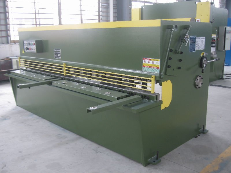 性能與特點(diǎn): 1.采用鋼板焊接結(jié)構(gòu),液壓傳動,氮?dú)飧谆爻?,操作方便,性能可靠,外形美觀。 2.刃口間隙調(diào)整有指示牌指示,調(diào)整輕便迅速。 3.設(shè)有燈光照明裝置,并能無級調(diào)節(jié)上刀架的行程量。 4.工作區(qū)采用柵欄式人身安全保護(hù)裝置。 5.后擋料尺寸及剪切次數(shù)有數(shù)字顯示裝置。