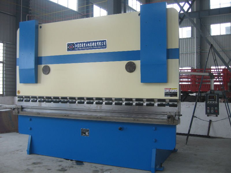 性能與特點: 1.全鋼焊接結構,振動消除應力,機械強度高、剛性好。液壓上傳動,平穩(wěn)可靠。 2.機械擋塊,扭軸同步,精度高。 3.后擋料距離、上滑塊行程,電動調節(jié)、手動微調裝置、數字顯示。 4.上模配有撓度補償機構,250噸和長度4000mm以上機床可采用下?lián)隙妊a償機構。